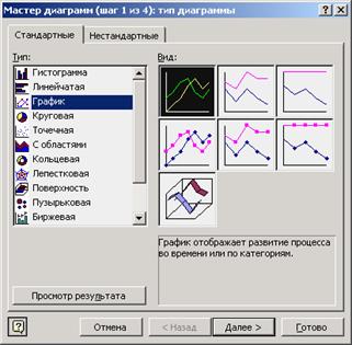 3. Вст а вка ® Диа г рамма ® Выбрать тип диаграммы: график