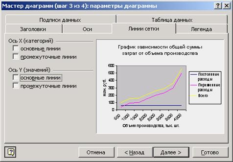 Далее необходимо перейти на вкладку «Линии сетки», где отказаться от горизонтальных линий сетки, параллельных оси X.