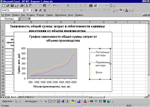 Теперь необходимо изменить размеры графических блоков таким образом, чтобы наилучшим образом представить графическую информацию. Необходимо изменить размеры области построения графиков (область диаграммы) и области подписей рядов данных (легенды). Необходимо: 1. Выделить область легенды, как это показано на рисунке ниже: