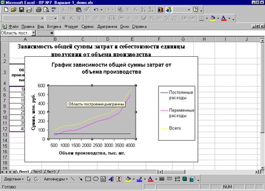 4. Изменить размеры области построения диаграммы (см. ниже):