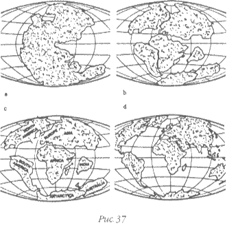 Расширяющееся дно Атлантического океана постепенно, дюйм за дюймом, удаляет Америку от Европы и Африки. В настоящее время считается, что сопутствующее сокращение Тихого океана обусловлено «субдукцией», или пододвиганием, Тихоокеанской плиты под Атлантическую. Это главная причина сдвигов земной коры и землетрясений вдоль всего Тихоокеанского бассейна, а также подъема горных хребтов вдоль границ этого региона. Столкновение Индийской плиты с Евразийской привело к образованию Гималаев и присоединению Индийского субконтинента к Азии. В 1985 году ученые из Корнельского университета обнаружили геологическую сутуру, где западная часть Африканской плиты осталась присоединенной к Американской плите, когда они разделились около полумиллиарда лет назад, «пожертвовав» Флориду и Джорджию Северной Америке. Сегодня почти все ученые приняли — с теми или иными дополнениями — гипотезу Вегенера о том, что первоначально Земля состояла из единого массива суши, окруженного океаном. Несмотря на небольшой — по геологическим меркам — возраст океанского дна (200 миллионов лет) ученые признают существование на Земле первобытного океана, следы которого находятся на покрытом новыми слоями дне океанов, но не на континентах. Зоны Архейского щита, возраст самых молодых пород которого составляет 2,8 миллиарда лет, содержат породы двух видов: зеленые изверженные породы, а также граниты и гнейсы. Стивен Мурбат в своей статье «Тпе Oldest Rocks and the Growth of Continents”, опубликованной в мартовском номере журнала «Scientific American» за 1977 год, писал: «Геологи убеждены, что зеленые изверженные породы извергались в воды первичного океана и что именно они являются представителями древних океанов, а равнины из гранита и гнейса могут быть остатками древних океанов». Интенсивное исследование пород на всех континентах выявило, что они соприкасались с океанской водой на протяжении, по крайней мере, трех миллиардов лет. В некоторых местах, например, в Зимбабве, были найдены осадочные породы, образовавшиеся под толстым слоем воды около 3,5 миллиарда лет назад. Новые, более совершенные методики позволили увеличить оценку возраста Архейских зон — включающих породы, которые извергались в первичный океан — до 3,8 миллиарда лет («Scientific American», сентябрь 1983 года, специальный выпуск «The Dynamic Earth»). Как долго продолжается дрейф континентов? Существовала ли на самом деле Пангея? Стивен Мурбат в упоминавшемся выше исследовании высказал предположение, что разделение континентов началось около 600 миллионов лет назад: «До этого они могли представлять собой один огромный суперконтинент Пангею или, возможно, два суперконтинента, Лауразию на севере и Гондвану на юге». Другие ученые, использовавшие в своих работах компьютерное моделирование, предположили, что 550 миллионов лет назад участки суши, в конечном итоге образовавшие Пангею или две ее соединяющиеся части, были разделены не больше, чем в настоящее время, и что процессы перемещения тектонических плит того или иного рода начались как минимум четыре миллиона лет назад. Однако, по мнению Мурбата, вопрос о том, существовал ли сначала единый суперконтинент или отдельные континенты, которые затем соединились, окружал ли один суперокеан все пространство суши или водные пространства разделяли несколько континентов, напоминает спор о том, что был