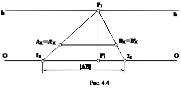 Решение. На основании картины отложим отрезок, равный 1 усл. метру (10 20). Из точек 10, 20 проведем измерительные лучи в точку Р или F. Все прямые, параллельные основанию картины и заключенные между двумя измерительными лучами в перспективе на любом удалении, будут равны 1 усл. метру. Пример 2. Определить действительную величину отрезка АВ (рис. 4.4).