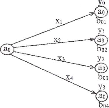 На мал. 4 показано дерево роботи цього автомата для чотирьох вхідних букв x