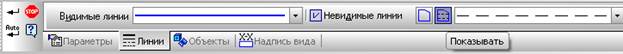 Для создания местного разреза: Активируйте Вид сверху; Нажмите правую клавишу мыши на виде и в появившемся контекстном меню выберите команду Параметры вида, на Панели свойств перейдите на закладку Линии, установите параметр Показывать невидимые линии, нажмите кнопку Создать объект (рис. 113).