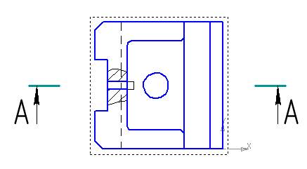 Рис. 114. Создание контура для местного разреза Активируйте команду «Местный разрез» Выделите созданный контур, на разрезе А – А и укажите отверстие, которое необходимо показать на Виде сверху. Результат построения местного разреза представлен на рис. 115: