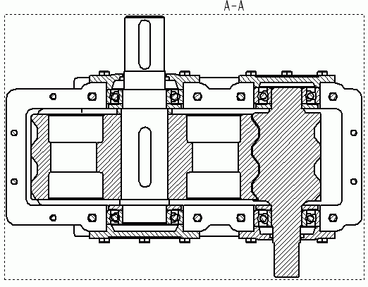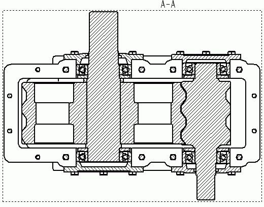 На этом виде изображено сечение редуктора горизонтальной плоскостью, причем сечение затрагивает все детали (рис. 4.16).