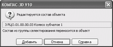 Рис. 4.20. Добавление геометрических объектов в состав объекта спецификации