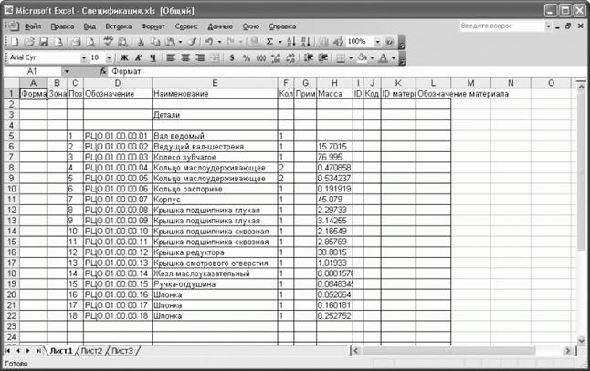 Рис. 4.25. Спецификация, сохраненная в Excel