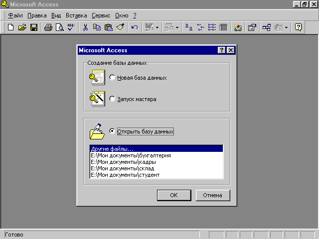 После вызова программы на экране появляется окно начала работы базы данных (Рис. 1).