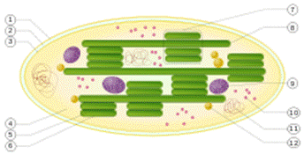 Пластиды — органеллы растительной клетки, состоящая из белковой стромы, окружённой двумя липопротеидными мембранами. Внутренняя из них образует внутрь выросты (тилакоиды, или ламеллы)[27].