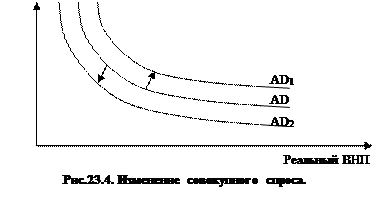 Под воздействием этих факторов кривая совокупного спроса может перемещаться влево или вправо (рис. 23.4.).