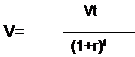 V - нынешняя стоимость будущей суммы денег; Vt – будущая стоимость сегодняшней суммы денег; r – ставка процента в десятичных дробях; t – количество лет.