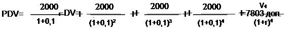 Допустим, что фирма, занимающаяся прокатом автомобилей, решает, приобретать ей еще один автомобиль или нет. Покупная цена автомобиля – 6000 дол.; его прокат приносит в год 2000 дол. дохода; через четыре года эксплуатации его можно продать за половинную стоимость, т.е. за 3000 дол. Следовательно, общая сумма дохода, на которую можно рассчитывать через четыре года, должна составить 11000дол.(2000*4+3000). Выгодно это или нет? Чтобы ответить на это вопрос необходимо сопоставить сегодняшние затраты в 6000 дол. и дисконтированную величину потока будущих доходов. Эта величина рассчитывается по формуле: где цифры от 1 до 4 означает получение дохода через 1,2,3 и 4 года. Исходя, допустим из 10 % годовых, в нашем случае мы получим такую дисконтную величину, т.е. стоимость затраченных сегодня 6000 дол. через 4 года: