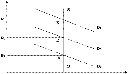 Пересечение кривой спроса DD0 с кривой предложения SS определяет равновесие на рынке земли, R0 – уровень ежемесячной ренты за 1 га земли. Площадь ОQ′Е0Rо представляет собой совокупную ренту за всю использованную в данном обществе землю. Изменение спроса на продукт, для которого понадобилась земля, например, пшеницу, приведет к повышению ежемесячной ренты за 1 га земли с R0 до R1. Это обусловит увеличение чистой абсолютной ренты (площади OQ′E2R2). В случае падения спроса на пшеницу, ежемесячная земельная рента за 1 га земли уменьшится до R2 и абсолютная рента – доOQ′E2R2. Следовательно, в неоклассическом понимании, земельная рента – это доход собственника земли и других природных ресурсов, предложение которых ограничено. В условиях неэластичного предложения земли, цена земли и абсолютная рента всецело зависят от изменения спроса. Кроме абсолютной и дифференциальной ренты, существует и монопольная рента, которая выделяется всеми экономическими школами. Она основывается на монопольной цене, по которой продается продукт редкого качества. Свойство, каким, например, является качество твердой пшеницы, позволяющих получать муку высших сортов с особыми хлебопекарными качествами или особые сорта вин, создает этим сельскохозяйственным продуктам монопольное положение на рынке и позволяет продавать их по монопольно высоким ценам. Монопольно высокая цена редких сельскохозяйственных продуктов не зависит от их общественной цены производства. Она определяется способностью покупателя платить за такой продукт высокую цену. Монопольная рента – это разница между монопольно высокой ценой исключительно редких продуктов и их стоимостью. Земельная рента – частный случай экономической ренты. Именно этот термин в основном используется в западной экономической литературе. Экономическая рента –это доход собственника от любого ресурса, предложение которого ограничено. Исходя из этого определения, рентой являются доходы в горнодобывающей («горная рента») и нефтеперерабатывающей промышленности, доходы в результате любой естественной монополии, и даже доходы спортивной звезды и топ модели, выдающегося музыканта и великого хирурга.