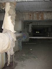 Состояние наружных и внутренних стен. Плиты цокольного перекрытия. Состояние фундаментных балок Состояние оголовников Состояние конструкций на данный момент. Инженерное оборудование. Теплоснабжение дома осуществляется от отдельно стоящего блока инженерного обслуживания. Вентиляция на кухнях и санузлах естественная, вытяжная. Водоснабжение осуществляется от городской сети водопровода. Горячее водоснабжение централизованное, от отдельно стоящего инженерного блока обслуживания. Канализация самотечная, в городскую сеть. Электроснабжение от городских сетей напряжением 380/220 в. Телефонизация и радиофикация от городских наружных сетей. На кровле устанавливаются антенны коллективного пользования. Инженерные коммуникации дома расположены в техническом этаже. В проветриваемом подполье, через все здание проходит магистральная теплотрасса.