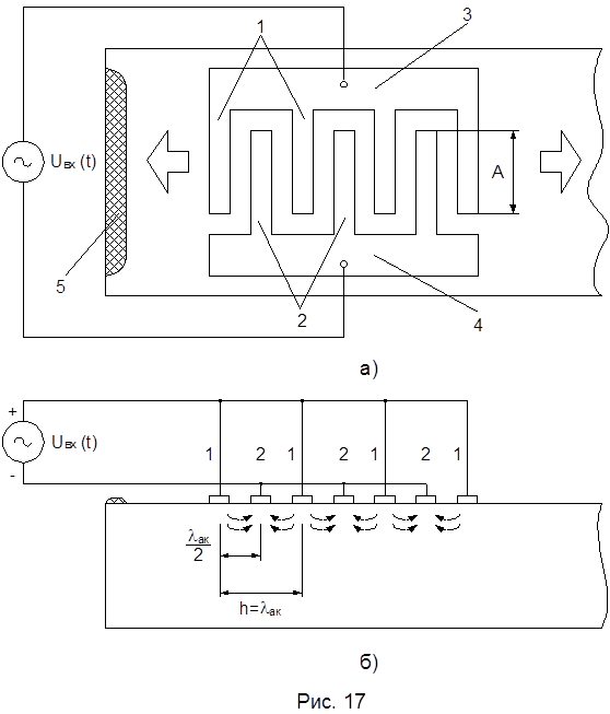 сигнала. Пространственный шаг h штырей определяет частоту акустическго синхронизма