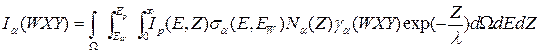 где W – возбуждаемый объем, E – энергия Оже-электронов (распределение энергий Оже-электронов Гауссово или Лоренцево), Ep и Для дальнейшего уточнения можно предположить трехмерную однородность химического состава в области, где значительна вероятность выхода. Кроме того, имеет смысл разделить плотность возбуждающего потока на две компоненты:
