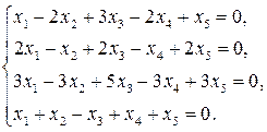 Задание 2 (базис и размерность линейного пространства решений ОСЛАУ). Найти базис и размерность линейного пространства решений однородной системы линейных алгебраических уравнений