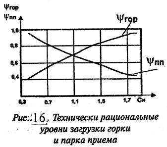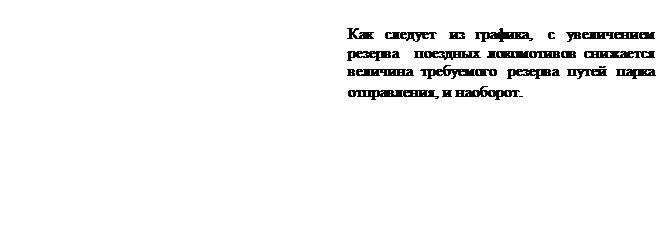 Рис. 17 Зависимость между резервами парка поездных локомотивов и числа путей отправления. Проще говоря, при нехватке путей в парках отправления надо вводить дополнительные локомотивы и бригады, а при нехватке локомотивов укладывать дополнительные пункты.