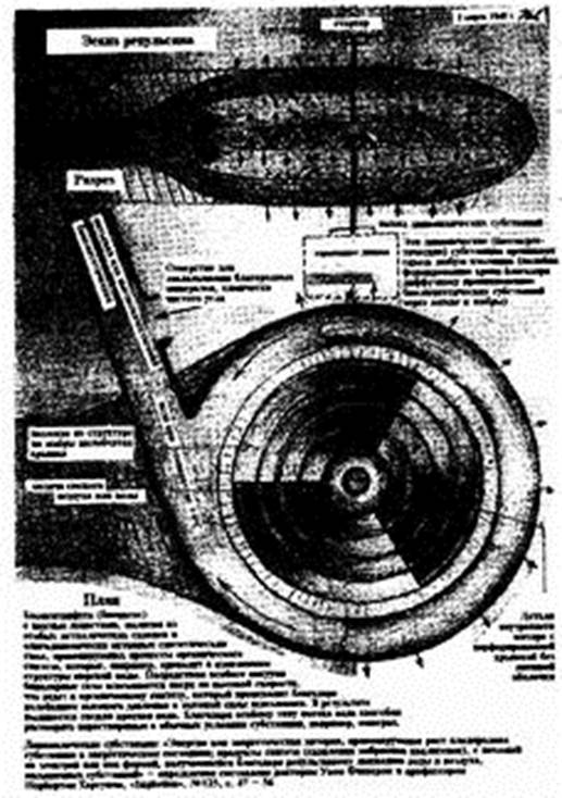 Прошение на патент. 1.Технология для атомной трансформации жидких и газообразных каплеобразующих субстанций характеризуется тем1. Технология для атомной трансформации жидких и газообразных каплеобразующих субстанций характеризуется тем, что с помощью ускоряющегося потока и при одновременной перемене поверхностного напряжения эти субстанции олигодинамически диссоциируются и продукты диссоциации воссоединяются, образуя органические продукты высококачественного синтеза. X Изобретение, которое делает возможным процесс, описанный в пункте 1, представляет собой многоуровневую центрифугу с концентрическими, расположенными рядом барокамерами (8), их стенки волнообразной формы по обеим сторонам связаны с засасывающей камерой (3) преимущественно посредством щелевых отверстий. 3- В соответствии с пунктом 2 барокамеры имеют коническую форму, сужающуюся в направлении, противоположном направлению вращения центрифуги. 4. В соответствии с пунктами 2 и 3 материал, из которого сделаны стенки камер, — это посеребренная или амальгамированная медь или позолоченный металл. 5. В соответствии с пунктами 2 и 3 материал, из которого сделаны стенки камер, — это синтетические смолы (пластик) или пластик со встроенными фрагментами посереб ренной или амальгамированной меди или из позолоченного металла. 5. В соответствии с пунктами 2 —5 камера (3) соединяется с трубкой (12), которая подает твердые, жидкие, газообразные ингредиенты, преимущественно локализирующиеся на оси вращения.