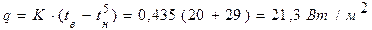 9. Вычисляем удельный тепловой поток, проходящий через наружную стену при температуре наружного воздуха, равной средней температуре наиболее холодной пятидневки по формуле (3.10)