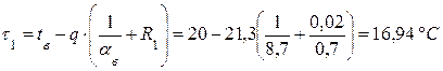 11.Определяем температуру на внутренней поверхности наружного угла по формуле (3.12)