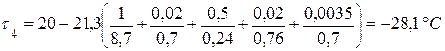10.Находим значения температур на границах слоев ограждения по формуле (3.11)