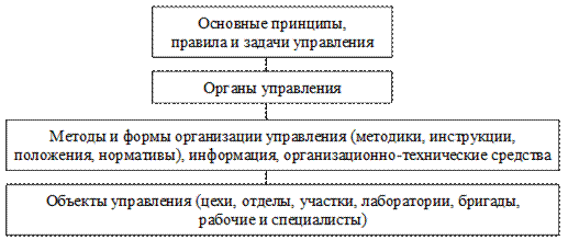 Управление можно представить как синтез средств и способов подготовки управленческих решений, организацию и контроль их исполнения. При этом руководство выполняет комплекс функций. Важнейшие связующие функции – выработка и принятие решений и обмен информацией (коммуникации), на основе которых руководитель получает данные, необходимые для принятия решений и доведения их до работников. К числу общих относятся функции планирования (включая стратегическое и текущее планирование), организации (включая организацию и координацию сотрудников), мотивации сотрудников к эффективному действию и контроль (включая учет и анализ деятельности предприятия). Конкретные задачи, стоящие перед органами управления различаются на каждом предприятии в зависимости от фактической внутренней и внешней социально-экономической ситуации, размера предприятия и его специализации. Внутренняя среда предприятия включает людей, технику, технологии, информацию, экономику, организационную структуру и др. в зависимости от целей, которые во многом определяются внешней средой. Это все основные элементы и подсистемы, которые обеспечивают процесс производства продукции и услуг и процесса управления, состоящий в разработке и реализации управленческих решений. Деятельность предприятия охватывает также экономические, социальные, технологические, информационные и др. процессы. Все внутриорганизационные процессы протекают в рамках организационной структуры (ОС), которая отражает внутреннее строение предприятия. Совокупность возникающих в процессе управления взаимосвязей и взаимоотношений между подразделениями предприятий, включая взаимоотношения, права и ответственность работников за выполнение конкретных видов деятельности в процессе управления предприятием, представляет собой организационную структуру. К структуре управления предъявляется множество требований, которые учитываются в следующих принципах формирования ОС: · организационная система должна отражать цели и задачи предприятия, т.е. меняться вместе с происходящими в производстве изменениями; · должна отражать функциональное разделение труда и объем полномочий работников управления; · должна соответствовать социально-культурной среде предприятия и учитывать условия, в которой ей придется функционировать. Главная функция ОС – обеспечение контроля и координации деятельности подразделений предприятия. ОС отражает уровень полномочий, делегированных различным функциональным и линейным подразделениям предприятия. ОС может создаваться в соответствии с функциями предприятия (планирование, учет, финансы, персонал, маркетинг, производство). А также в соответствии с особенностями деятельности, номенклатурой и ассортиментом продукции, спецификой рынка и т.д. Структура зависит от многих факторов, которые можно сгруппировать следующим образом: технические (масштаб производства, сложность продукции, технических процессов и оборудования, уровень автоматизации производства и управления); организационно-экономические (степень централизации функций, характер связи между различными ступенями и звеньями управляющей системы, между объектом и субъектом управления); внешние связи и условия (уровень кооперации, система снабжения и сбыта, климатические и природные условия); организ