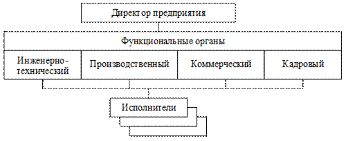 При функциональной структуре руководители функциональных подразделений специализируются в определенной области деятельности и отвечают за реализацию соответствующих функций, непосредственно дают распоряжения производственным подразделениям по вопросам, находящимся в их компетенции (см. рис. 21). Основные преимущества: прямое воздействие специалистов на производство, высокий уровень специализации управления, глубокая разработка и обоснование принимаемых решений. Основной недостаток – сложность и неэкономичность (много подразделений, а, следовательно, и каналов управления). Используется на крупных предприятиях.