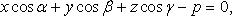 где - углы, образуемые нормальным вектором плоскости с осями координат; p - расстояние от начала координат до плоскости.