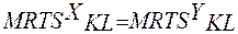 MRTSX KL – предельная норма технического замещения труда капиталом при производстве блага Х. 3. Если будет достигнута эффективная структура выпуска продукции, выражающаяся в предельной норме продуктовой трансформации, которая показывает каким количеством продукта Y следует пожертвовать ради производства дополнительной единицы продукта X при полном и эффективном использовании всех ресурсов. Структура выпуска считается эффективной, если нельзя увеличить благосостояния одного субъекта, не ухудшив состояние других субъектов путем изменения структуры выпуска, то есть должно выполниться равенство: