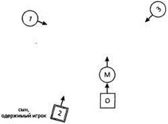 (После этого): ■ Б.Х.: Как чувствует себя отец? Отец: Я чувствую себя подавленным. Мать: Мне нехорошо, я чувствую себя покинутой. Первая сестра: Я чувствую себя одинокой, я одна. Исполняющий роль клиента: Как-то задумчиво я чувствую себя здесь. Вторая сестра: Мне-тоже нехорошо. Мне не хватает здесь силы. Б.Х. (вводит в расстановку женщину справа радом с матерью; движение 1): Это сестра-близнец. Что изменилось? Переходная расстановка и расстановка-решение: