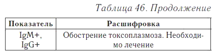 Токсоплазмоз — это болезнь, которая вызывается простейшими микроорганизмами. Заражение человека может произойти через экскременты кошек или через зараженные токсоплазмой продукты питания (мясо и молоко). Как правило, заболевание протекает бессимптомно, диагноз ставится по титрам антител (табл. 46).