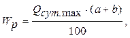 где a, b – максимальные разности ординат интегральных графиков подачи и потребления соответственно по избытку и недостатку, % от расчетного суточного расхода воды; Wн.п.з. – неприкосновенный противопожарный запас воды, м 3.