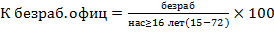 Численность офиц.без/раб включает числ-ть постоянного населения, зарегистрированная в органах службы занятости, которые на момент учета не имели работы, искали ее и готовы были приступить к ней.