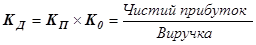 Поєднавши коефіцієнт чистого прибутку (Кп) та коефіцієнт оборотності активів (Ко), отримаємо формулу Дюпона (за назвою корпорації Du Pont, що першою запровадила даний показник):