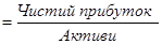 Доцільно наголосити, що величина одержаного фірмою прибутку характеризує абсолютний результат, а не ефективність її діяльності. Це пояснюється тим, що більший прибуток фірми може бути зумовлений більшою величиною інвестованого капіталу, а не вищою ефективністю його використання. Із ефективністю діяльності фірми безпосередньо пов’язане таке поняття, як рентабельність[1]. Рентабельність господарської діяльності фірми характеризує рівень її доходності (прибутковості) і виражає рівень віддачі витрат та ступінь використання ресурсів. Таким чином, фірми, що одержують прибуток, називають рентабельними, а ті, що працюють із збитками – нерентабельними. Для визначення рентабельності застосовують систему показників. Найбільш узагальнюючий із них – коефіцієнт рентабельності активів (або коефіцієнт окупності активів) (Pa):