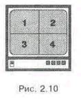 Большие возможности по выводу на экран одного монитора изображений от нескольких камер дают квадраторы. Эти устройства позволяют выводить четыре изображения одновременно (рис. 2.10). В этом случае решается проблема последовательного коммутатора, связанная с непросматриваемостью всех зон объекта кроме наблюдаемой в данный момент. Однако возможность одновременно видеть четыре зоны достигается ценой снижения разрешающей способности. Частично это может быть устранено увеличением размера экрана. Другой, более эффективный способ - использование дежурного монитора. В этом случае основной монитор (обычно с экраном большого размера) отображает 4 зоны, а на дежурный выводят изображение от камеры, в зоне которой зарегистрировано движение или которая больше интересует оператора.