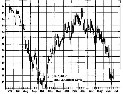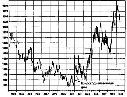 Рисунок 6.18. ШИРОКОДИАПАЗОННЫЙ ДЕНЬ ПАДЕНИЯ: ЗОЛОТО, ДЕКАБРЬ 1993