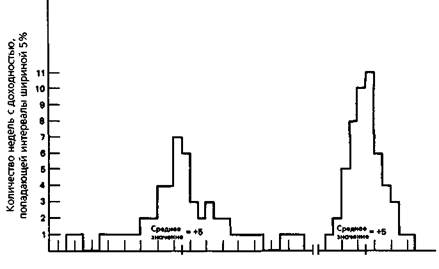 -70-60-50-40-30-20-10 0 +10+20+30+40+50+60+70+80-20-10 0 +10+20+30 Недельная процентная доходность Второй по/код можно оправдать на основании того, что значительная часть залоговых средств может быть внесена в виде казначейских векселей. Таким образом, в противоположность покупателям ценных бумаг фьючерсный трейдер не жертвует безрисковой прибылью для того, чтобы участвовать в других инвестициях. Сокращенная форма коэффициента Шарпа, кроме того, имеет свое теоретическое оправдание в случае финансовых управляющих: коэффициент Шарпа будет возрастать, если управляющий увеличивает свой леверидж — соотношение между размером открытых позиций и величиной залоговых средств (а это нежелательное свойство). На сокращенную форму коэффициента Шарпа изменения в леверидже не влияют. В форме E/sd коэффициент Шарпа был бы одним и тем же, независимо от того, выражено ли £ как прибыль в долларах или как процентная доходность. Причина в том, что те же самые единицы измерения использовались бы и для стандартного отклонения. Таким образом, 738 ЧАСТЬ 4. торговые системы и измерение эффективности торговли минимальная требуемая величина активов появлялось бы как в числителе, так и в знаменателе, и была бы сокращена*. Для ясности изложения примеры, приведенные в этой главе далее, подразумевают сокращенную форму коэффициента Шарпа. Это упрошенное предположение не изменяет существенно какие-либо теоретические или практические обсуждаемые моменты.