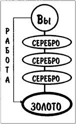 Что теперь делать? Опуститься на эту глубину и работать с ЗОЛОТОМ, первым настоящим ЗОЛОТОМ на твоей линии. Пока работаешь с ЗОЛОТОМ, СЕРЕБРЯНЫЕ тоже СТАНОВЯТСЯ ЗОЛОТОМ. А как же превратить СЕРЕБРО в ЗОЛОТО? Найти кого-то ниже их. Если лицо, находящееся ниже, действительно активно (ЗОЛОТО), тогда то СЕРЕБРО, которое его спонсировало, говорит: "Надо собраться...". Ничего не мотивирует людей лучше, чем кто-то под ним, кто ДЕЛАЕТ ЧТО-ТО. Говорят, быстрее и эффективнее можно мотивировать людей, если поставить свечу под зад, а не горящий факел на голову. Обобщая: единственное, чего ты хочешь, чтобы спонсируемые тобой стали от тебя зависимыми. Они не могут вечно зависеть от тебя, иначе работа не будет двигаться. Должен подойти момент, когда у них не будет необходимости в тебе. Этот момент наступает, когда твои партнеры умеют обучать своих людей, чтобы они могли провести 10 "уроков на салфетке". Теперь уже все знают, что нужно знать, чтобы создать крупное дело. Теперь можешь начать поиск нового серьезного человека. В качестве примера: ты спонсируешь Сью, говоришь ей: "Сью, ты как солнце. У солнца больше энергии, чем у любого другого тела, известного нам (это один из комплиментов)", - и продолжаешь, - "Лицо, которое ты (Сью) спонсируешь, как кастрюля с водой". (Надо добавить: ты спонсировал Сью, но не снимай с себя роли солнца и не называй ее кастрюлей с водой - это не очень лестно). В твоей группе есть такое "Солнце". Когда наступит момент закипания воды? Если возьмешь кастрюлю и выставишь на середину самой жаркой пустыни, вода должна достигнуть температуры в 100 градусов, чтобы начать кипеть. При 98,99 не закипит, необходимо не менее 100 градусов.