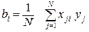 Из выражения (3.26) следует, что любой коэффициент уравнения регрессии bi определяется скалярным произведением столбца y на соответствующий столбец xi деленным на число опытов N в матрице планирования: