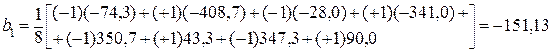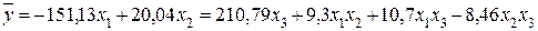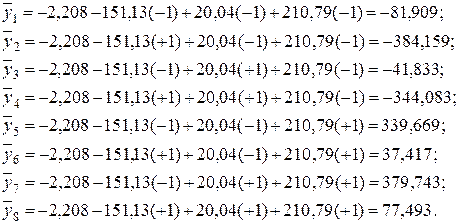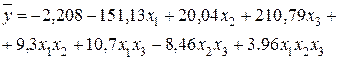 5 Определяемоценки коэффициентов регрессии при взаимодействиях факторов. Планирование по матрице, представленной в таблица 3.6, позволяет получить математическую модель вида: