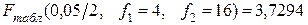 определяем из таблицы приложения Б критическое значение F – критерия для уровня значимости α = 0.05 и степеней свободы числителя