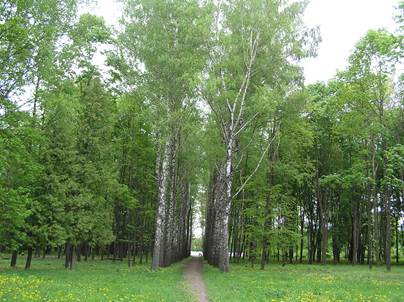 Фото 1. При закладке парка в г.Плавске использована редкая для лесов и лесопарков России лучевая система аллей-просек.