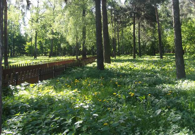 Фото 13. В Черкизовском парке Москвы, имеющем статус особо охраняемой территории регионального значения категории «памятник садово-паркового искусства», после огораживания вытоптанной сосновой рощи под пологом деревьев восстановился густой травяной покров и значительно улучшилось состояние высоковозрастных сосен.