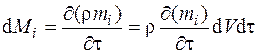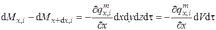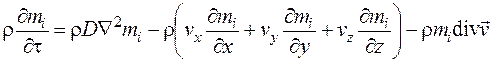 Аналогичные выражения можно записать и в направлении осей y и z. Если просуммировать изменение массы i -го компонента, проходящей через параллелепипед, то получим