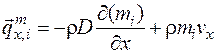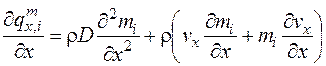Будем полагать, что перенос массы осуществляется только за счет концентрационной диффузии и конвекции. Тогда плотность потока массы вдоль оси х математически можно записать следующим образом: