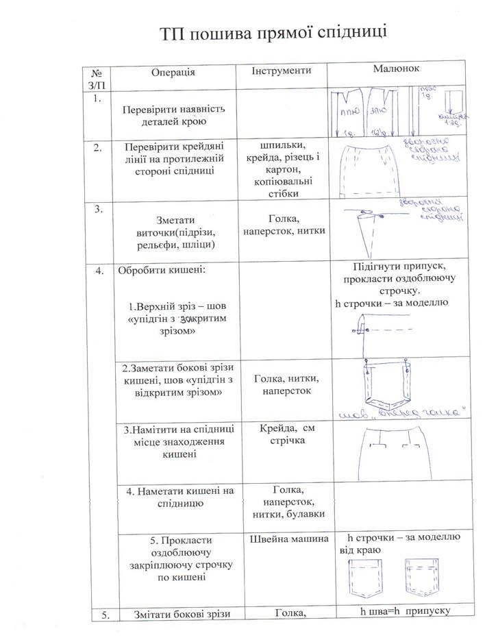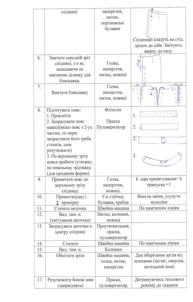 Тема:Технологія виготовлення спідниці. - Складання технологічної послідовності пошиття виробу. Учні ознайомившись з інструкційною картою пошиття прямої спідниці, складаюсь Технологічну послідовність власної спідниці.