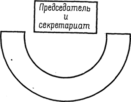 ВОПРОС №8. РАССАДКА НА КОНФЕРЕНЦИИ План рассадки делегаций должен быть заранее согласован секретарем каждой делегации, которому надлежит удостовериться в том, что принятые решения обеспечивают представителям его страны равноправие в ранге и обращении по сравнению с другими делегациями. Отведенные для делегаций места отчетливо обозначаются карточками с наименованием государств. При участии только двух делегаций они размещаются лицом друг к другу по обе стороны стола, покрытого традиционной зеленой скатертью. Руководители делегаций сидят в центре, им ставятся стулья с высокими спинками, пресс-папье, чернильница и прочее, что секретари сочтут необходимым (см. рис.). Секретари располагаются в торце стола. Порядок рассадки нескольких делегаций зависит от планировки данного зала. Во всех случаях делегации располагаются в алфавитном порядке, определяемом правилами процедуры конференции или обычаем, принятым в данной организации. Рационально оставлять одну сторону зала свободной для прохода участников и для удобства распространения документов во время заседания. Рис. Планы рассадки: Председатель и секретариат